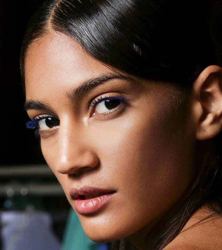 Tai, kas tinka blondinėms ar raudonplaukėms, gali tapti katastrofa brunetėms. Tačiau giliai kobalto mėlyna yra puikus pasirinkimas šokoladinėms brunetėms su rudomis akimis.