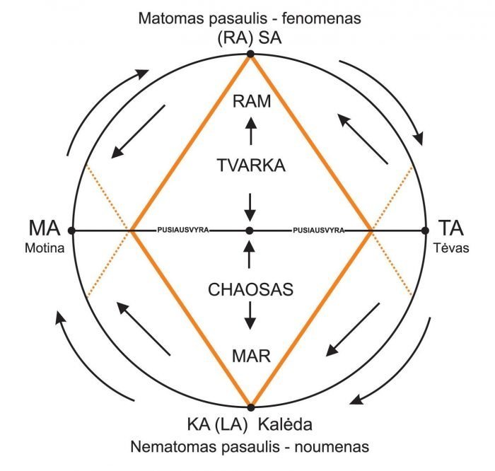Per Sodno sakralią geometriją galima suvokti ir Protėvių pasaulėžiūros esminius elementus, kurie ten yra „užrašyti“. Šviesa gimsta iš Ugnies, o tamsa – iš Vandens. Be tamsos būtų neįmanomas ir Šviesos pasireiškimas. Šviesa ir tamsa gimsta iš dviejų pirminių elementų – Ugnies ir Vandens – santykio. Todėl Šviesa pasižymi teigiamomis savybėmis (ne moraline prasme), o tamsa – neigiamomis. Šviesa sklinda ir plečiasi, tamsa traukia į save. Stebinti Sąmonė, išsivadavusi iš minėtųjų priešybių poveikio (nebesitapatindama su jomis), gali jas pažinti ir tapti laisvu ir laimingu Visatos atomu, dieviškąja dalele, kuri nėra atskirta nuo visumos, jaučia visumą ir pati ja yra. Nevyksta tapatinimosi su vienu ar kitu visumos fragmentu (ego).