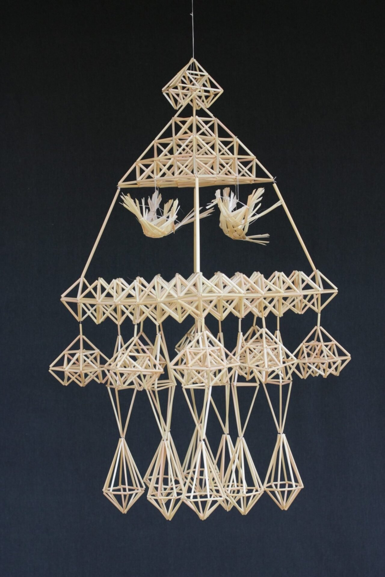 Gal kiek šaltokas? Mūsų Protėviai tai išsprendė, struktūros viduje ar iš išorės pakabindami mielus lietuviškus paukštelius, kurie liudija seną tradiciją bei abstrakčiai struktūrai suteikia šilumos bei Žmogaus – Gamtos – dieviškumo vienovės alsavimo. Pasak Marijos Liugienės, paukštis Lietuviui įprasmino Dangaus ir Žemės ryšį, buvo tikima, kad Protėvių vėlės išskrenda Paukščių taku, o pavasarį ant jų sparnų kartu su šiluma, sugrįžtančia Saule grįžta atgal. Gal būt tai Senolių reinkarnacijos metafora? Toks cikliškas besikartojantis išėjimas-sugrįžimas? Jei Žmogus yra Gamtos dalis, tuomet tai, kas būdinga Gamtai, turi būti būdinga ir Žmogui. Jei grįžta pavasaris, sugrįžta ir Žmogus. Nėra amžino pragaro ir amžino rojaus. Tai byloja šie maži paukšteliai, lyg senojo Protėvio palaiminimai Ainiui, ataidintys iš amžių glūdumos.