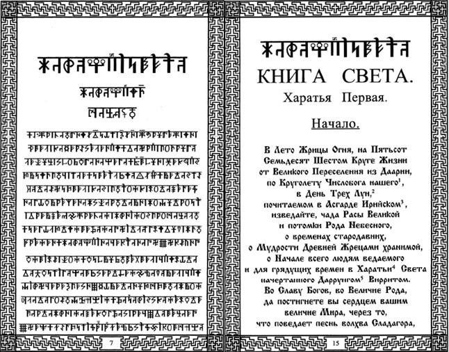 Ar galite įsivaizduoti mano nustebimą, kai vartydamas šią knygą pamačiau runų raštą? Lygiai tokį patį, kokį kadaise buvau matęs ir ant lietuviškų paminklų! Tik ant paminklų, su „įspaustomis“ runomis, nebuvo horizontalių linijų. Aišku, čia tekstas runomis (harijų karūnomis) skaitomas senąja rusų kalba. Atrodytų – įrodymas ne koks. Bet. Esama ir kito netiesioginio įrodymo, kokiomis runomis rašė lietuviai dar Vytauto laikais.