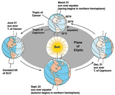 Šiuo metu yra tokia padėtis: esant Žemei perihelyje, Šiaurės pusrutulyje būna žiema, o Pietų - vasara. Perihelyje planeta skrieja greičiau, todėl Šiaurės pusrutulyje šaltasis pusmetis yra aštuoniomis dienomis trumpesnis negu šiltasis. Šiaurės pusrutulyje žiema trunka 89 paras, o pavasaris - 93, vasara - 94, ruduo - 90 parų. Pietų pusrutulyje atvirkščiai - tiek pat parų ilgesnis šaltasis pusmetis. Tai svarbi priežastis, dėl kurios Pietų pusrutulis dabar šaltesnis už Šiaurės pusrutulį.